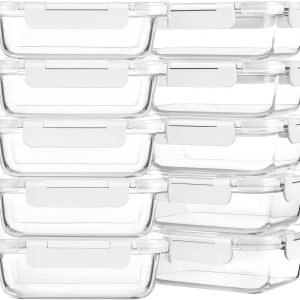ฉลองครบรอบ! สินค้ามีจำนวนจำกัด เพียง 49 บาท: M MCIRCO ชุดกล่องแก้ว 10 ชิ้น 22 ออนซ์ สำหรับเตรียมอาหาร เก็บอาหาร พร้อมฝา ใช้ได้กับไมโครเวฟ เตาอบ ช่องแช่แข็ง และเครื่องล้างจาน